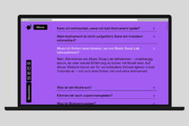 Das ehemalige Music Lab änderte seinen Namen in Music Swap Lab. Es ist nicht nur um das Wort „Swap“ erweitert, sondern bietet nun einen großen Fundus an Tutorials und unterschiedlichen Musikstücken. Am Grundgedanken hat sich nichts geändert: Werde Teil eines Online-Orchesters, mit oder ohne Instrument und Vorkenntnissen. Mithilfe von Tutorials, Noten und ausführlichen Anleitungen können die Teilnehmer verschiedene Stimmen in wechselnden Orchesterstücken ausprobieren und als Videos einreichen. Die Stimmen reichen von klassischen Musikinstrumenten wie Geige und Klavier über Gesang, Tanz bis hin zu schlichten Rhythmusstimmen mit Alltagsgegenständen. Die eingereichten Beiträge werden zu einer großen Video-Orchesteraufnahme zusammengefügt.